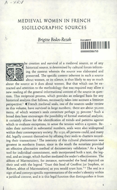 Medieval women in French sigillographic sources