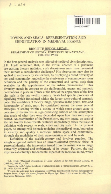 Towns and seals : representation and signification in medieval France