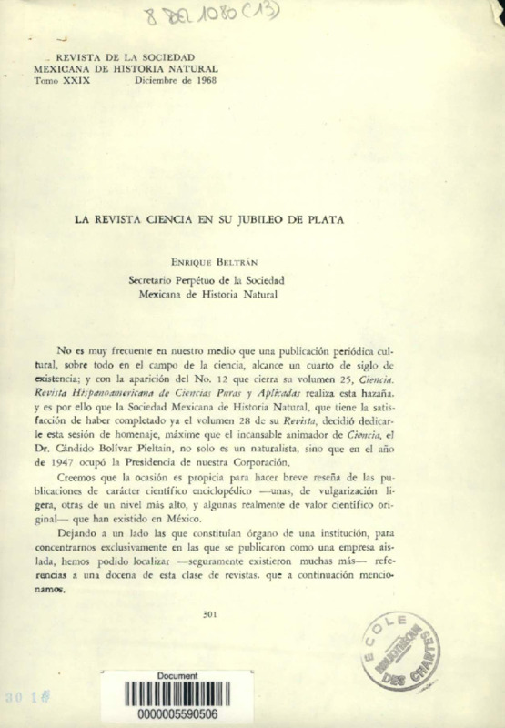 Informe de labores realizadas por la sociedad Mexicana de Historia natural en su trigesimo primer periodo de trabajo correspondiente al ano de 1967