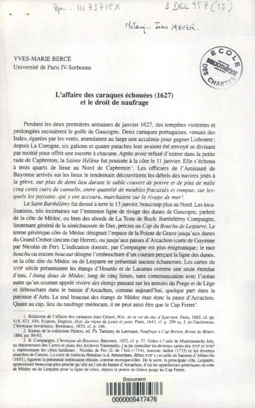 L'affaire des caraques échouées (1627) et le droit de naufrage