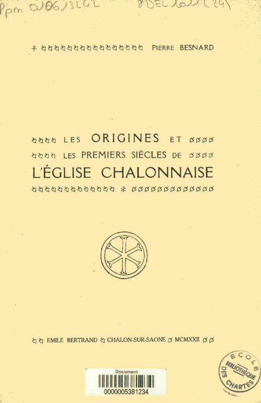 Les origines et les premiers siècles de l'église chalonnaise