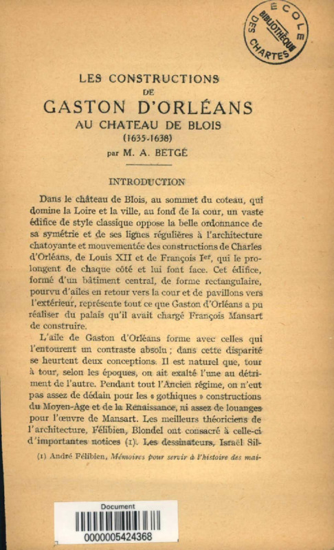 Les constructions de Gaston d'Orléans au château de Blois : 1635-1638