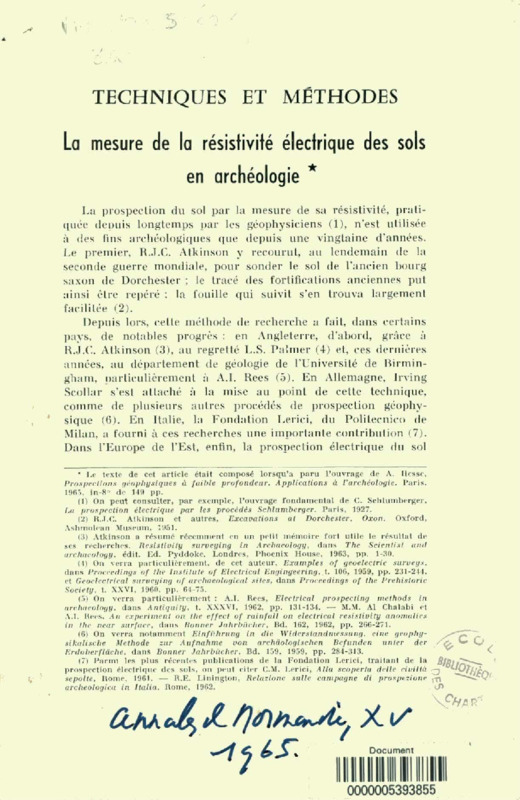 Techniques et méthodes : La mesure de la résistivité électrique des sols en archéologie