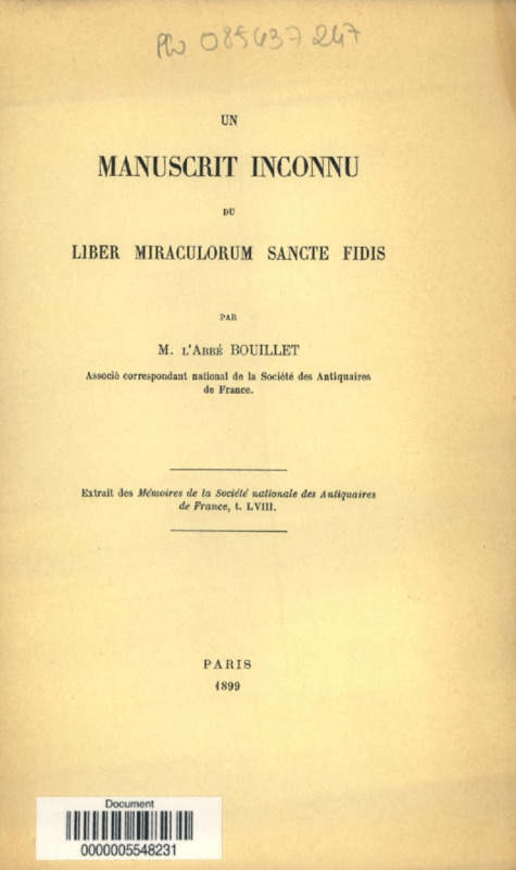 Un manuscrit inconnu du "Liber miraculorum sancte Fidis"