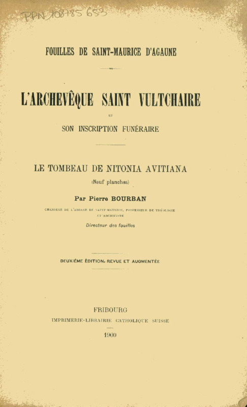 Fouilles de Saint-Maurice d'Agaune : L'archevêque Saint Vultchaire et son inscription funéraire Le tombeau de Nitonia Avitiana