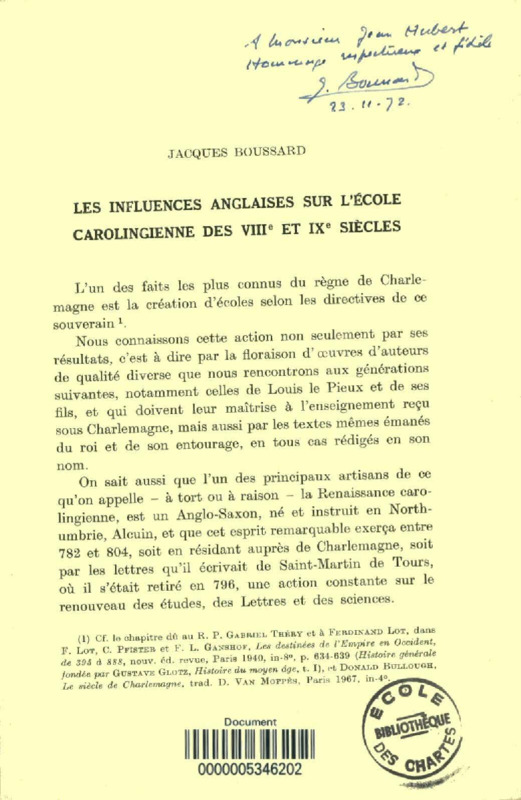 Les influences anglaises sur l'école carolingienne des VIIIe et IXe siècles