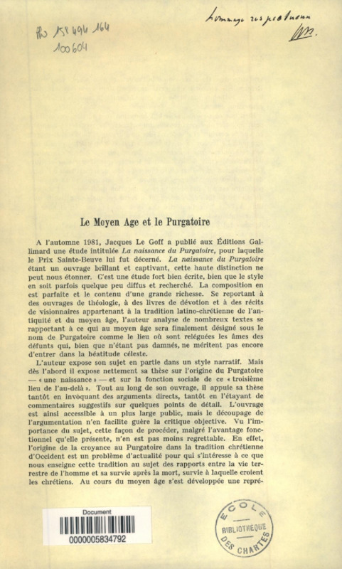 Le Moyen âge et le Purgatoire