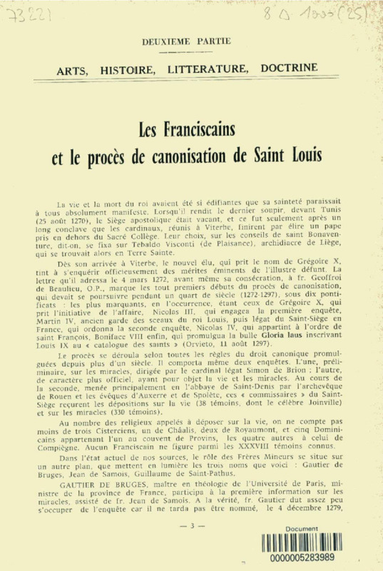 Les Franciscains et le procès de canonisation de saint Louis