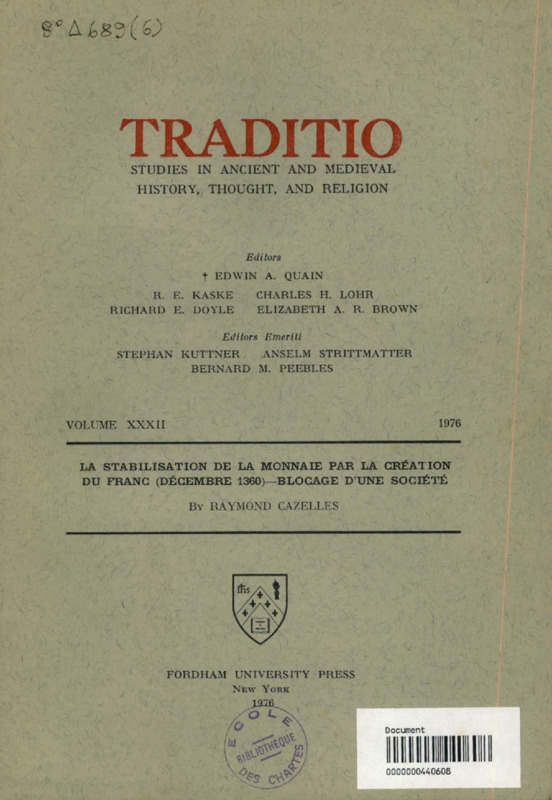 La stabilisation de la monnaie par la création du franc (décembre 1360) : blocage d'une société