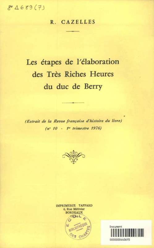 Les étapes de l'élaboration des Très riches heures du duc de Berry