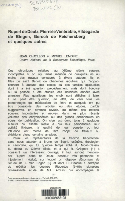 Rupert de Deutz, Pierre le Vénérable, Hildegarde de Bingen, Géroch de Reichersberg et quelque autres
