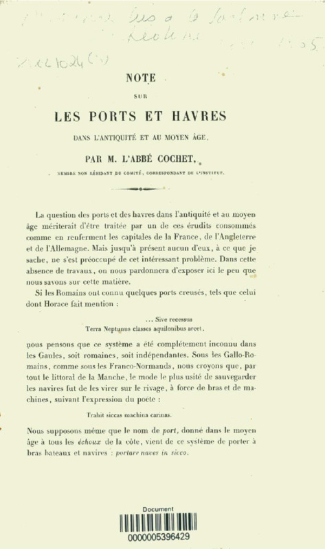 Note sur les ports et havres dans l'Antiquité et au Moyen age