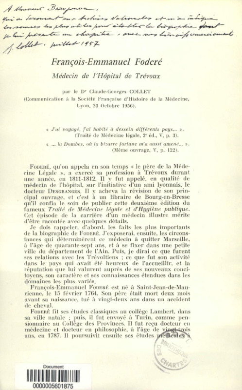 Un Episode obscur de la vie du Docteur Foderé
