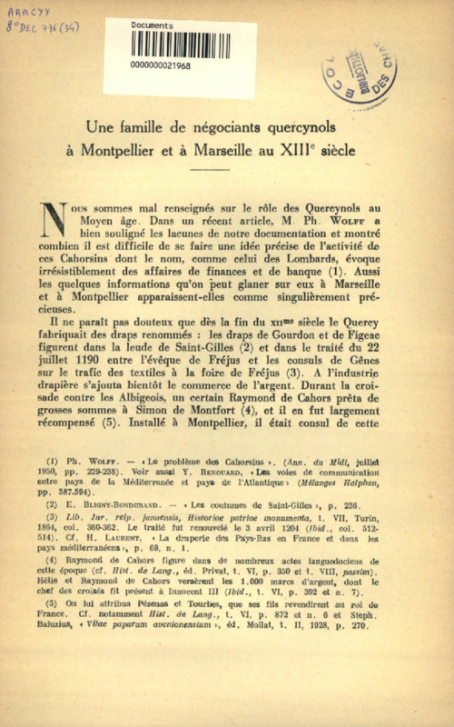 Un Marchand de Chypre, bourgeois de Montpellier