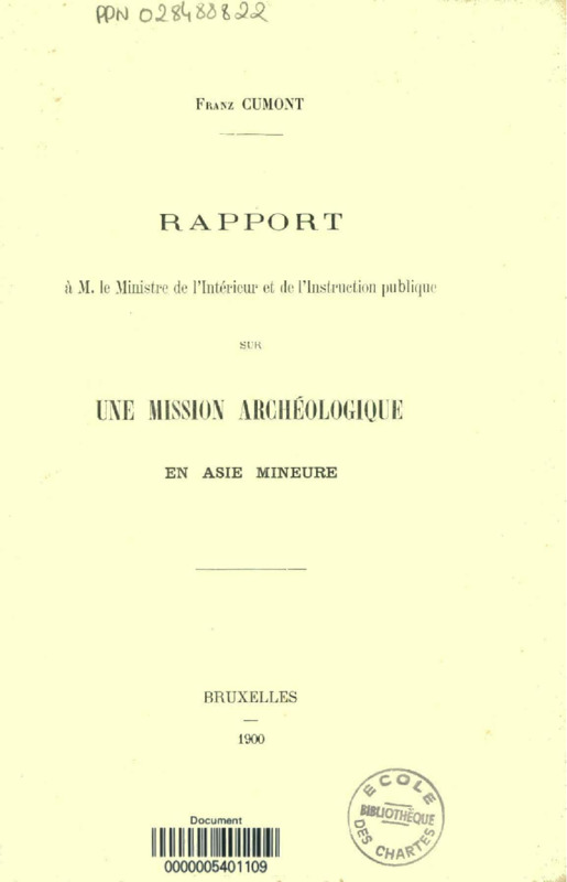 Rapport à M. le Ministre de l'Intérieur et de l'Instruction publique sur une Mission Archéologique en Asie Mineure