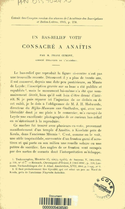Un bas-relief votif consacré à Anaïtis