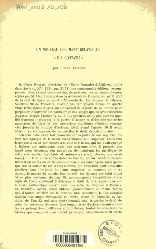Un nouveau document relatif au "ius civitatis"