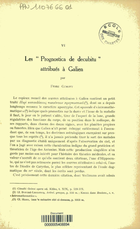 Les "Prognostica de decubitu" attribués à Galien