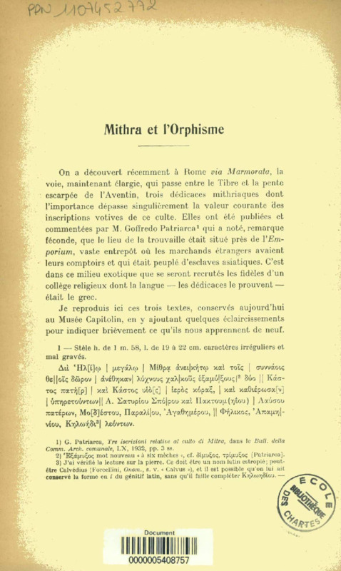 Mithra et l'orphisme