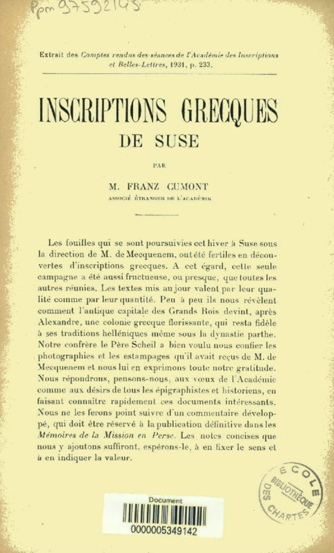 Inscriptions grecques trouvées à Suse