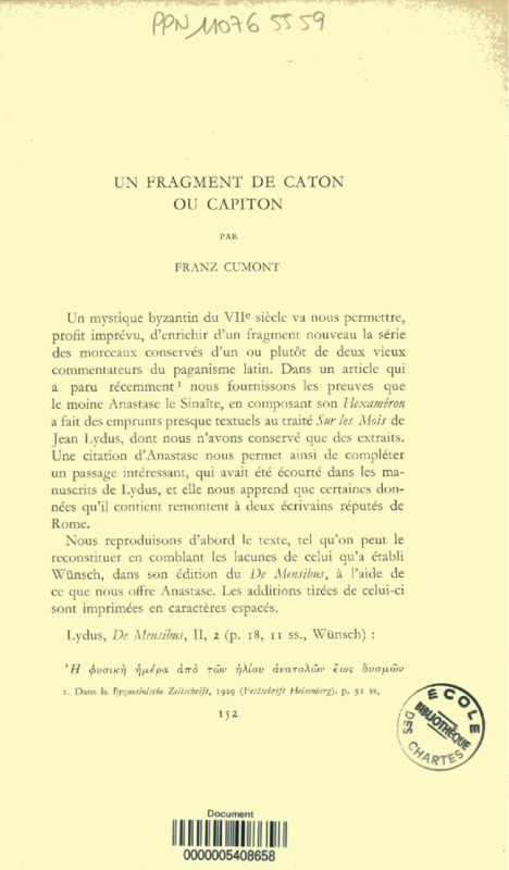 Un fragment de Caton ou Capiton