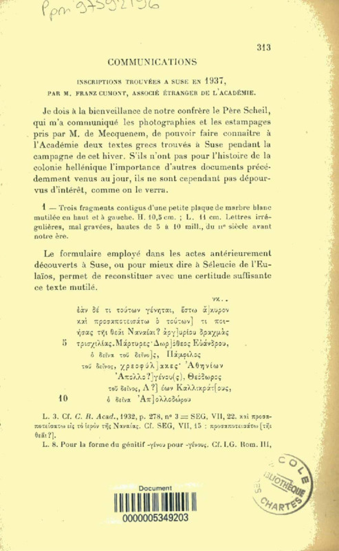 Inscriptions trouvées à Suse en 1937