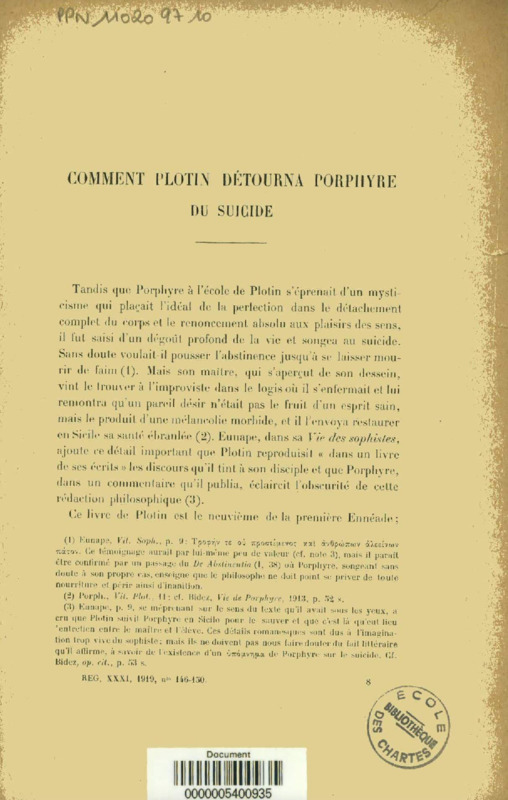 Comment Plotin détourna Porphyre du suicide