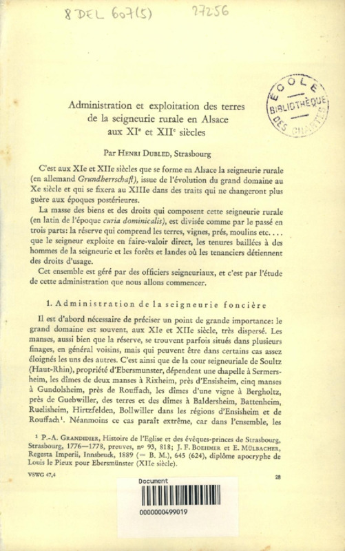 Administration et exploitation des terres de la seigneurie rurale en Alsace aux XIe et XIIe siècles