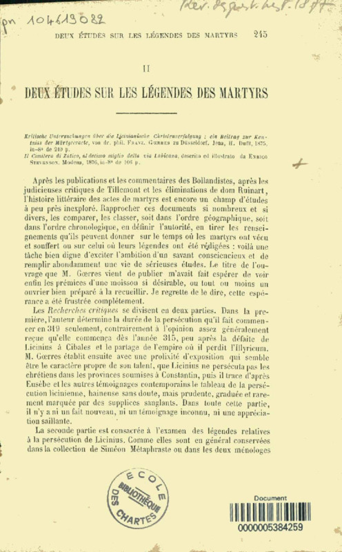 Deux études sur les légendes des martyrs