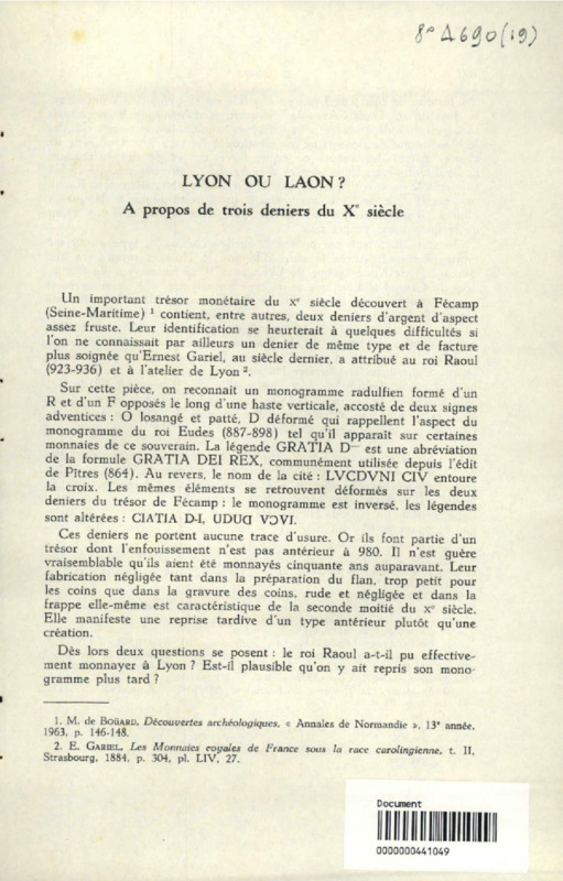 Lyon ou Laon ? A propos de trois deniers du Xe siècle