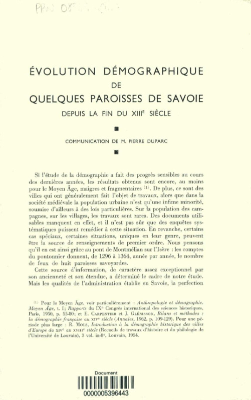 Evolution démographique de quelques paroisses de Savoie depuis la fin du XIIIe siècle
