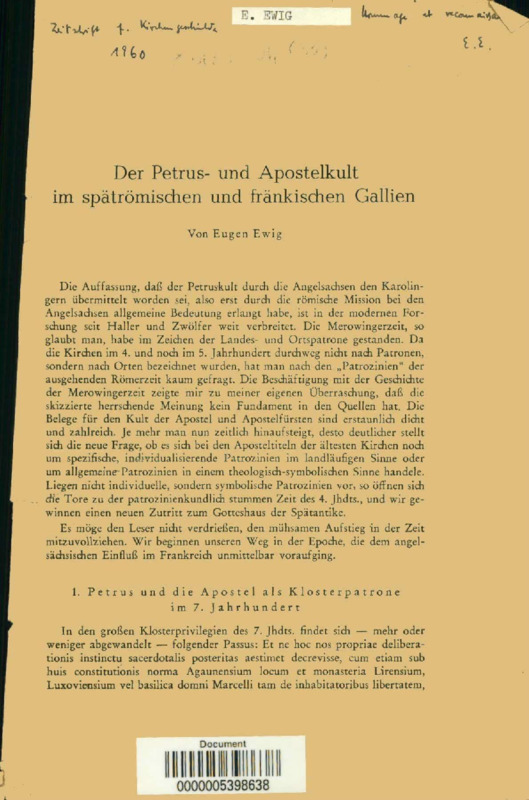 Der Petrus- und Apostelkult im spätrömischen und fränkischen Gallien