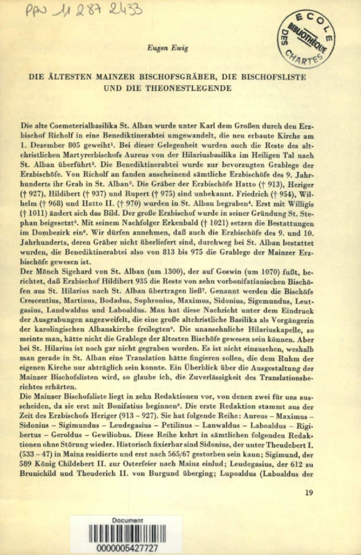 Die Ältesten mainzer Bischofsgräber, die Bischofsliste und die Theonestlegende