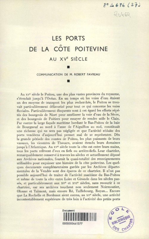 Les ports de la côte poitevine au XVe siècle