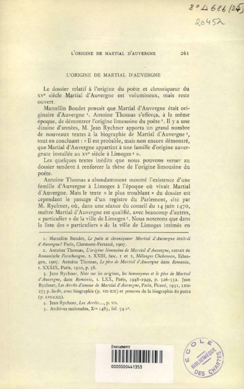 L'origine de Martial d'Auvergne