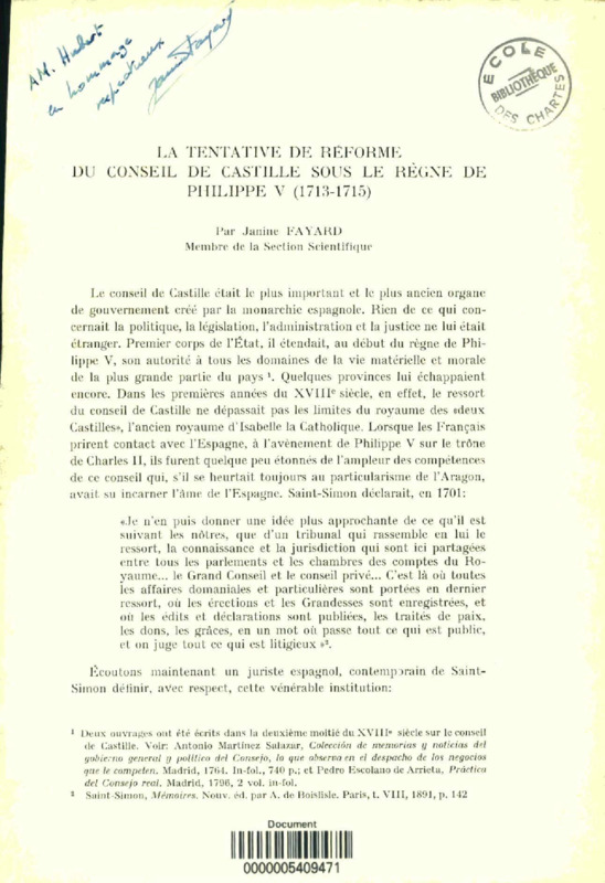 La tentative de réforme du conseil de Castille sous le règne de Philippe V : 1713-1715