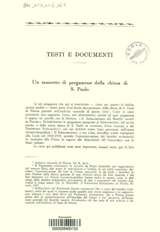 Un mazzeto di pergamene della chiesa di S. Paolo : Testi e documenti
