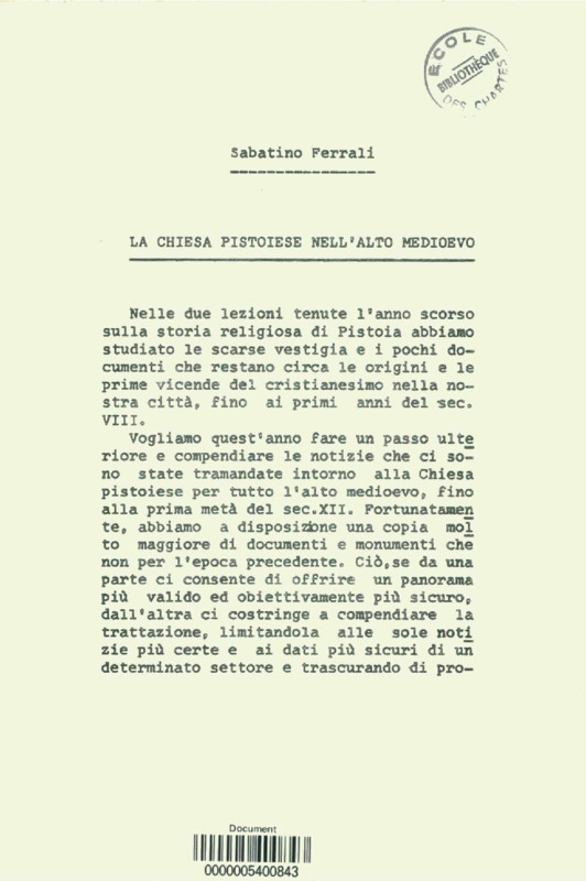 La chiesa Pistoiese nell'alto medioevo