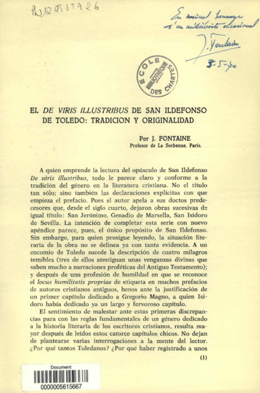 El De Viris Illustribus de san Ildefonso de Toledo : tradicion y originalidad
