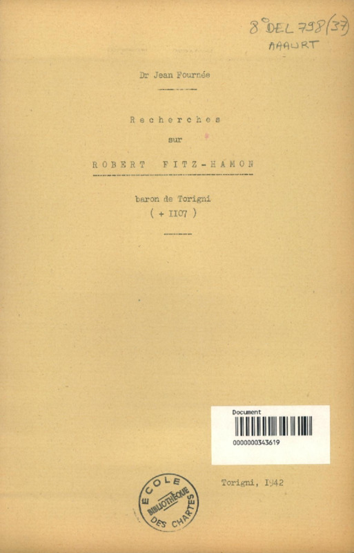 Recherches sur Robert Fitz-Hamon, baron de Torigni (+ 1107)