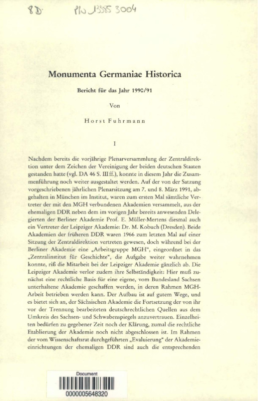 Monumenta Germaniae Historica : Bericht für das Jahr 1990/91