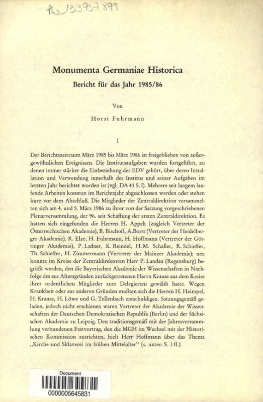 Monumenta Germaniae Historica : Bericht für das Jahr 1985/86