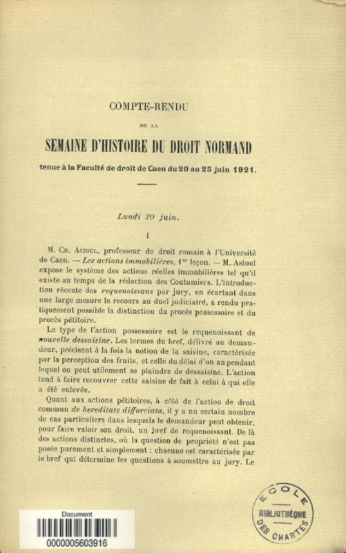Compte-rendu de la Semaine d'Histoire du Droit normand