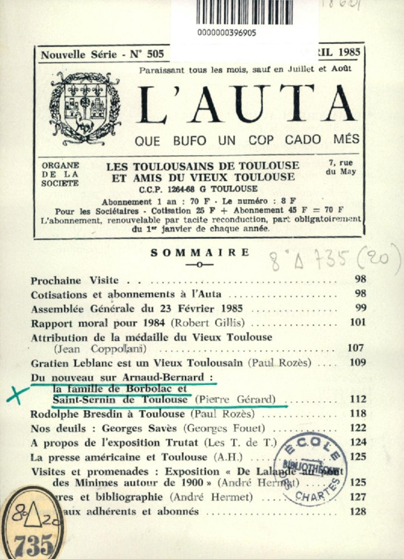 Du nouveau sur Arnaud-Bernard : la famille de Borbolac et Saint-Sernin de Toulouse (vers 1080-1136)