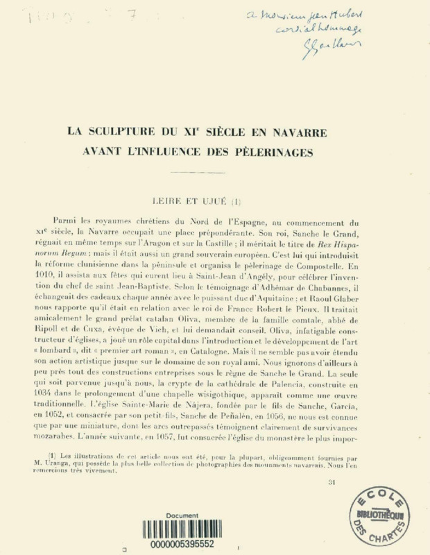 La sculpture du XIe siècle en Navarre avant l'influence des pélerinages