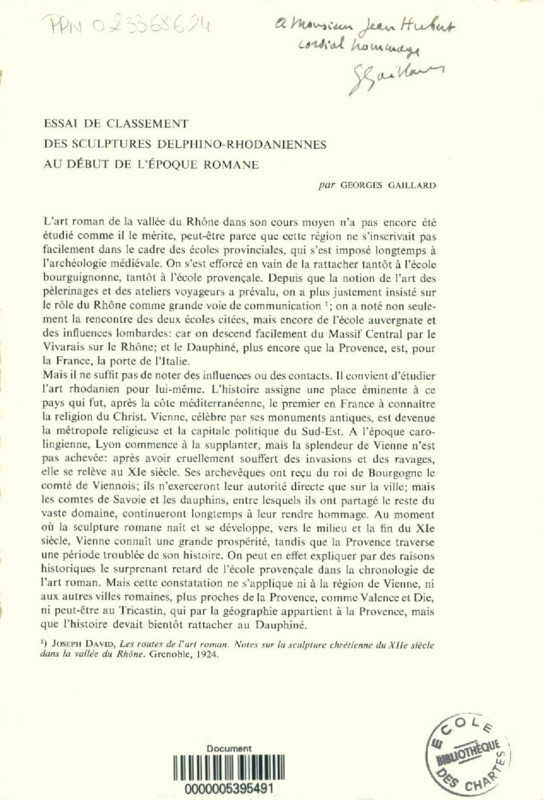 Essai de classement des sculptures delphinorhadaniennes au début de l'époque romane