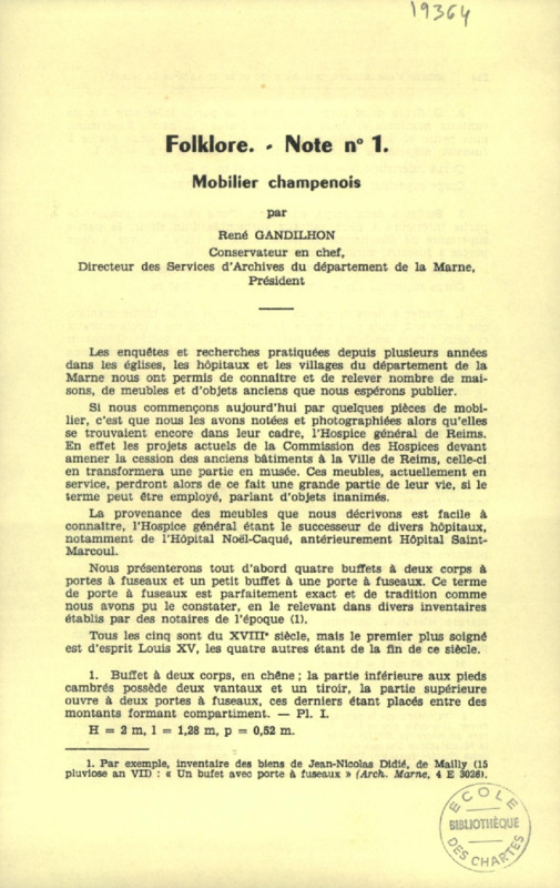 Folklore, note n`1 : mobilier champenois
