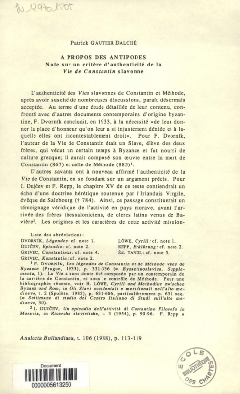 A propos des antipodes : note sur un critère d'authenticité de la Vie de Constantin slavonne
