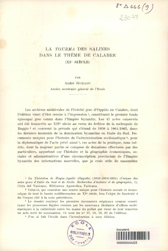 La Tourma des salines dans le thème de Calabre (XIe siècle)