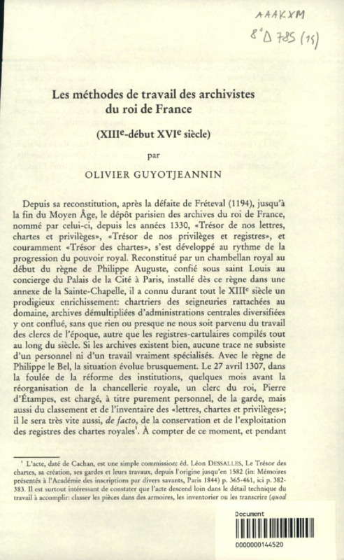 Les méthodes de travail des archivistes du roi de France (XIIIe-début XIVe siècle)